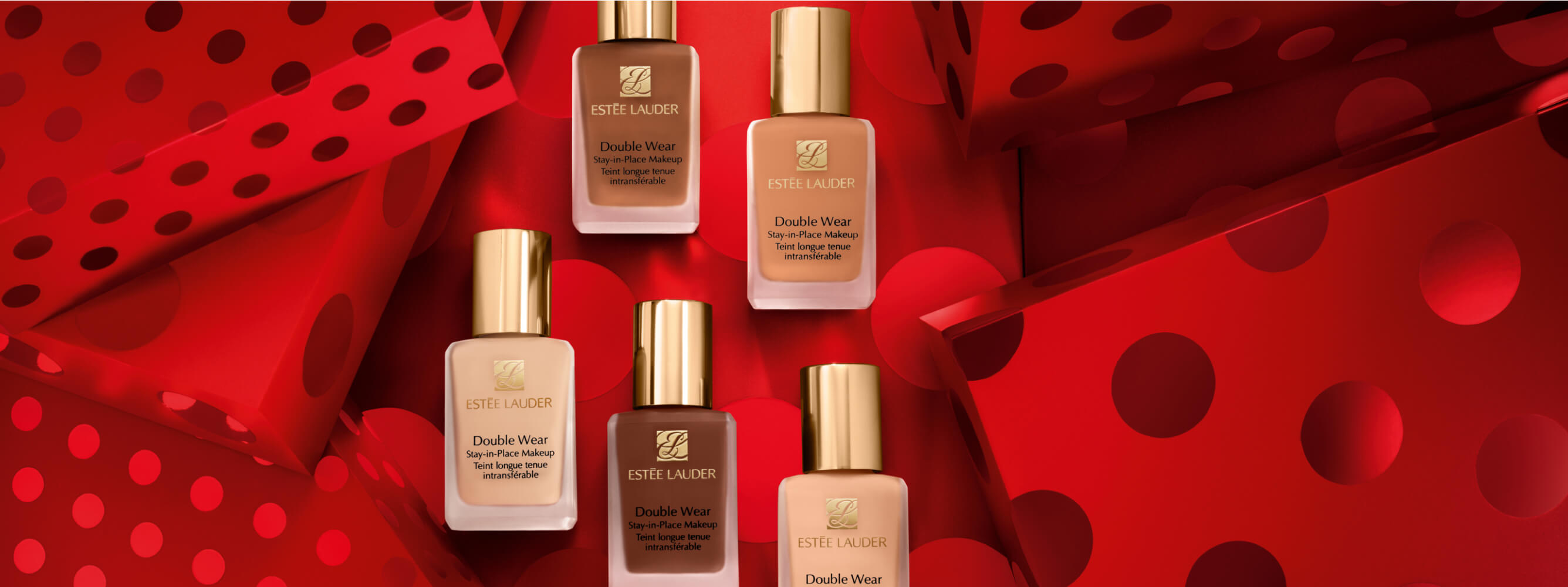 Piel perfecta todo el día. Double Wear Foundation se adapta a tu ritmo sin necesidad de retoques, para que brilles en cada momento de estas fiestas.